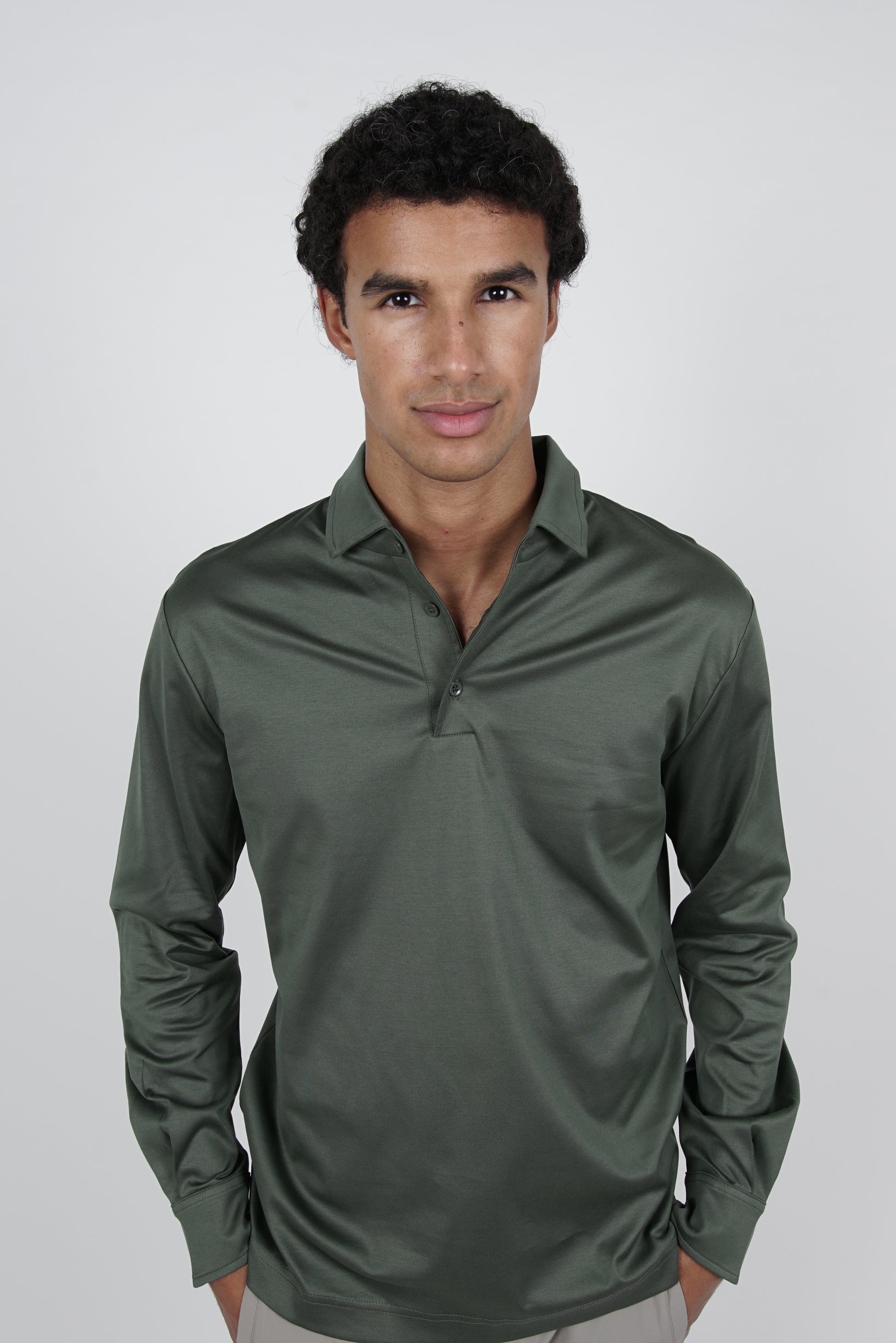 Edera army green lange mouwen polo